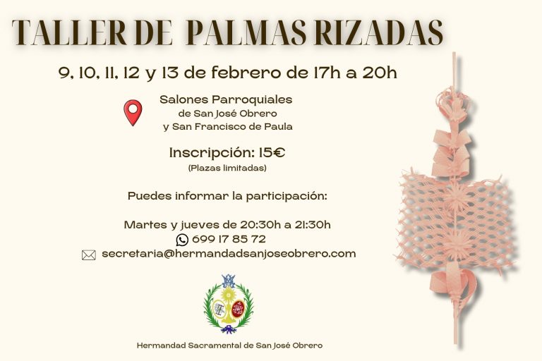 TALLER DE PALMAS Los días 9, 10, 11, 12 y 13 de febrero en horario de 17h a 20h …