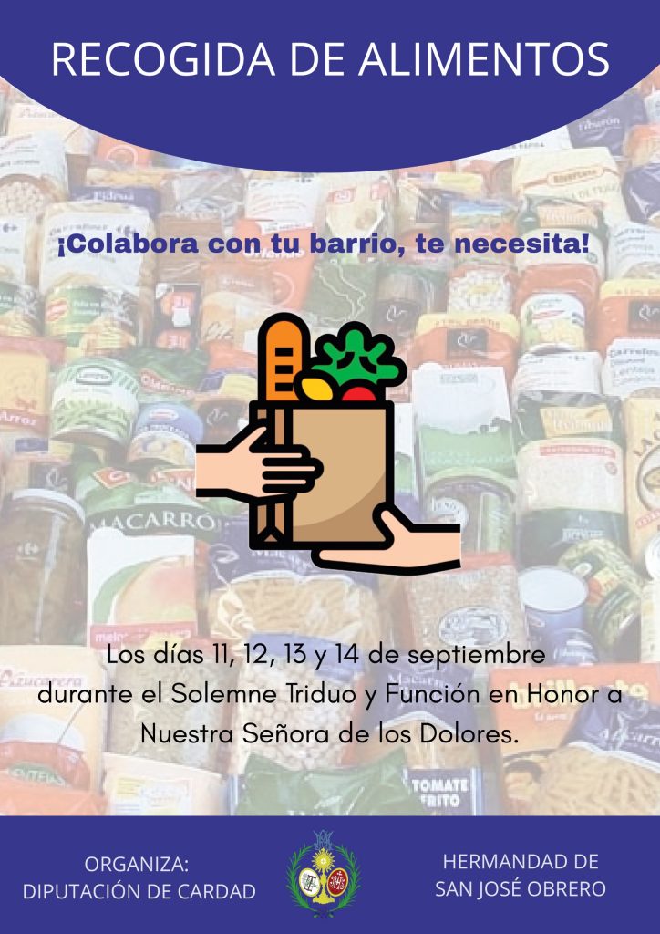 Nuestra Diputación de Caridad llevará a cabo durante los cultos en honor a Nuestra Señora de los Dolores una recogida de alimentos.