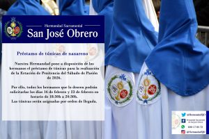 PRÉSTAMO DE TÚNICAS DE NAZARENO Nuestra Hermandad pone a disposición de los hermanos el préstamo de túnicas para la realización de la Estación de Penitencia…