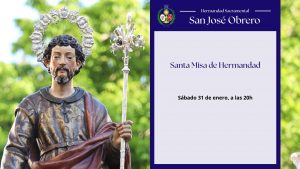 SANTA MISA DE HERMANDAD DEL MES DE ENERO Como cada último sábado de mes, el próximo 31 de enero nuestra Hermandad celebrará Santa Misa a…