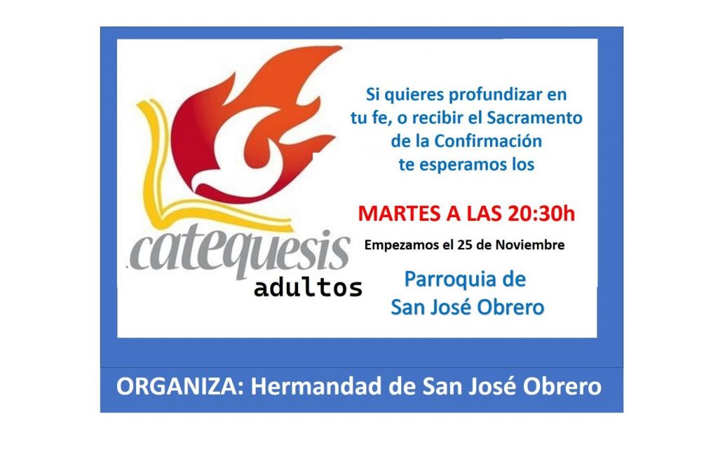 Nuestra Hermandad organiza un grupo de catequesis de confirmación para adultos. La primera reunión tendrá lugar el próximo martes 25 de noviembre a las 20:30h.