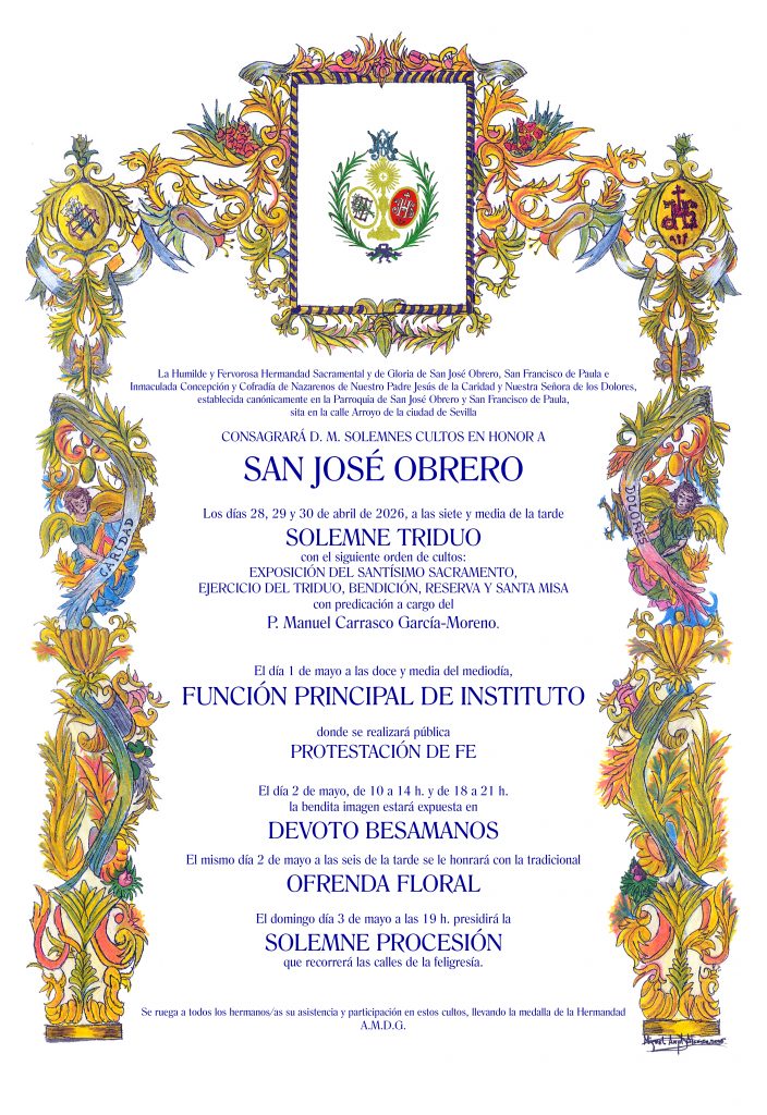 CONVOCATORIA DE LOS SOLEMNES CULTOS EN HONOR A SAN JOSÉ OBRERO