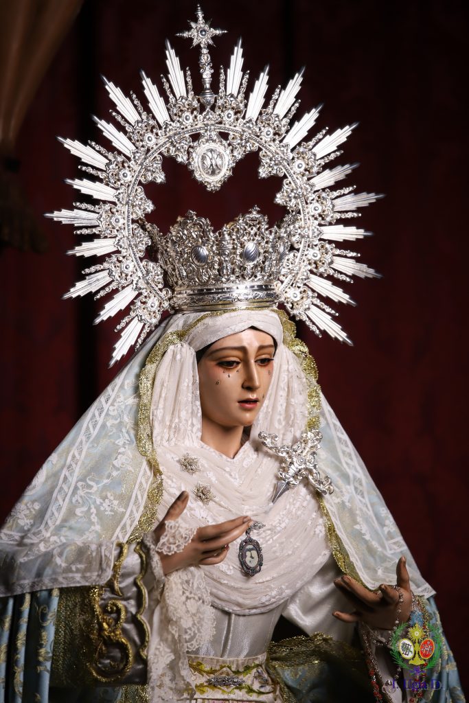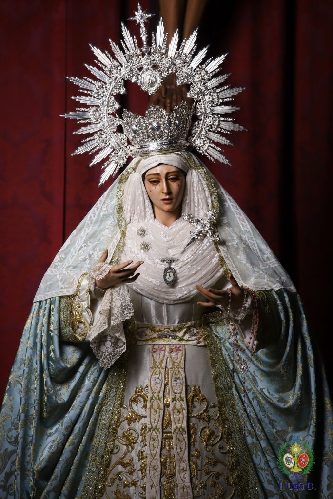 Nuestra Señora de los Dolores ya se encuentra ataviada por N.H. Antonio Bejarano para la festividad de la Inmaculada Concepción de la Santísima Virgen María.