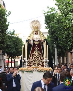 NUESTRA SEÑORA DE LOS DOLORES PARA EL ROSARIO DE LA AURORA La Santísima Virgen ya se encuentra ataviada por N.H. Antonio Bejarano para el Rosario…