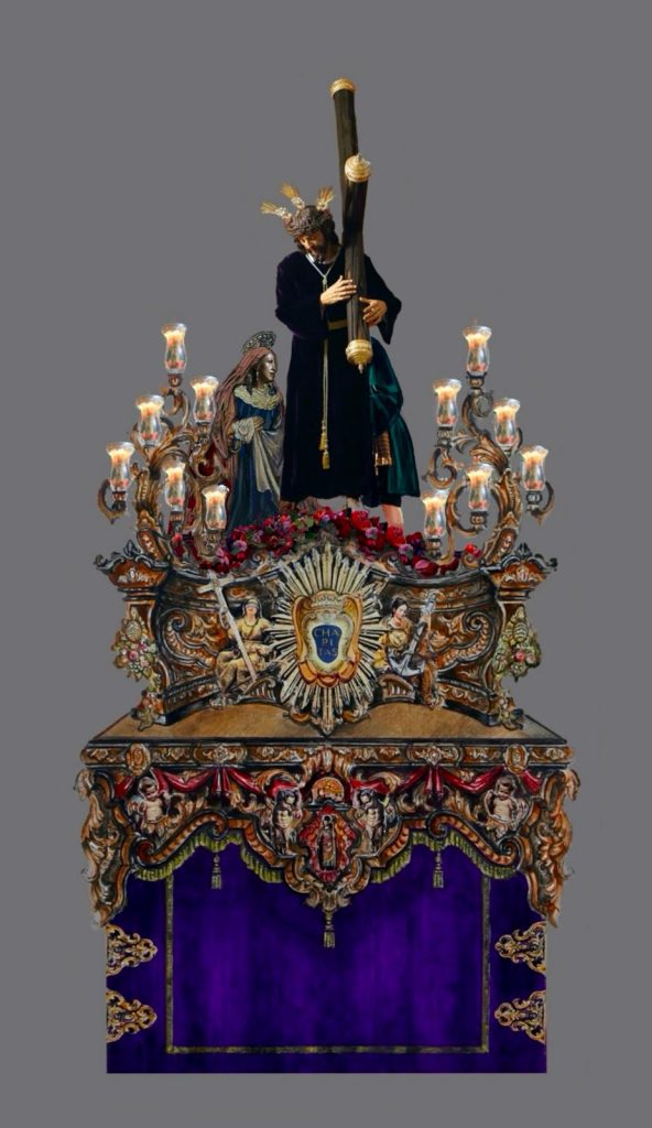 Este ilusionante proyecto, refleja el sentir de toda nuestra Hermandad al buscar un paso acorde y que refleje la personalidad e idiosincrasia que nuestra corporación transmite en cada estación de penitencia. Técnicamente no se trata de una talla barnizada al uso en un solo tono, sino que combina diferentes colores de madera por lo que para su creación se está utilizando varios tipos de tan noble elemento para conseguir tres tonalidades, de esta manera se conseguirá una gran riqueza de colores y matices guardando una gama controlada que irá desde el oro apagado de la orfebrería, pasando por los tierras y negros de la talla ornamental a colores que no sean estridentes para la imaginería, las pinturas y los estofados en oro de las frutas y flores, intentando de imitar a la incrustación de madera, llamada esta técnica tarecea, en algunas partes del bombo y respiraderos como elemento decorativo.