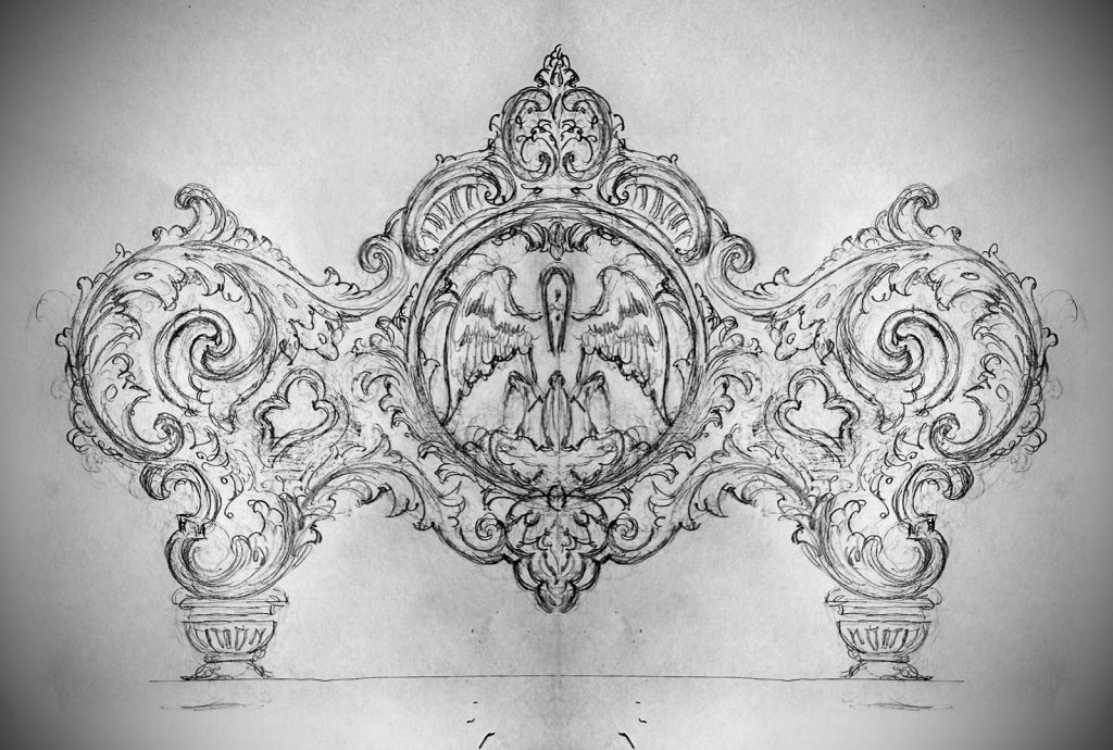 La obra ha sido concebida como una pieza de diseño simétrico con calados y en consonancia con la ornamentación del paso. Está compuesto por dos roleos que enmarcan la pieza central, que tiene como motivo principal la iconografía del pelícano abriéndose el pecho para alimentar a sus crías con su sangre, como símbolo del amor y de la Caridad, en alusión a la advocación de nuestro Sagrado Titular.