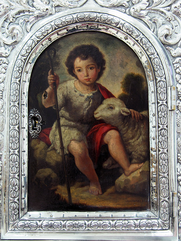 Ya por entonces, el exterior o anverso de la pequeña puerta, contaba con la bella representación pictórica del Buen Pastor, obra del reconocido pintor sevillano Juan Antonio Rodríguez Hernández, ya fallecido.
