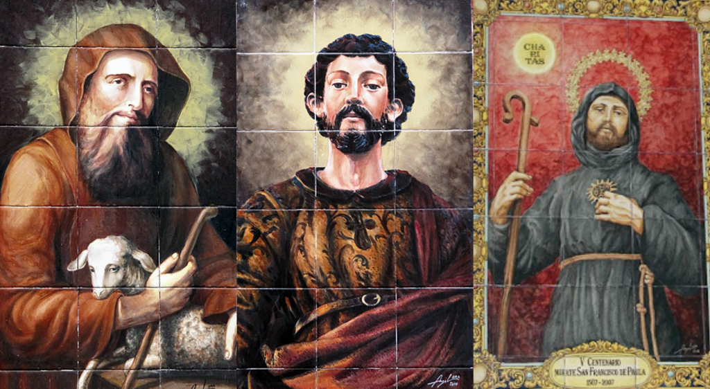 El primero data de 2007, recoge a San Francisco de Paula en su iconografía más clásica, vistiendo el hábito de los Mínimos, con el báculo en la derecha y su mano izquierda sobre el pecho, acariciando su lema alusivo de la Caridad, La pintura está inspirada en la imagen que Fernando Aguado talló en 2007 y quedó entronizada en la parroquia. Fue bendecido por el entonces superior general de la Orden Mínima, Rvdmo. P.fray Francesco Marinel OM. el 5 de abril de 2008 con motivo de la celebración del V centenario de la muerte (1507-2007) en la fachada del Convento.