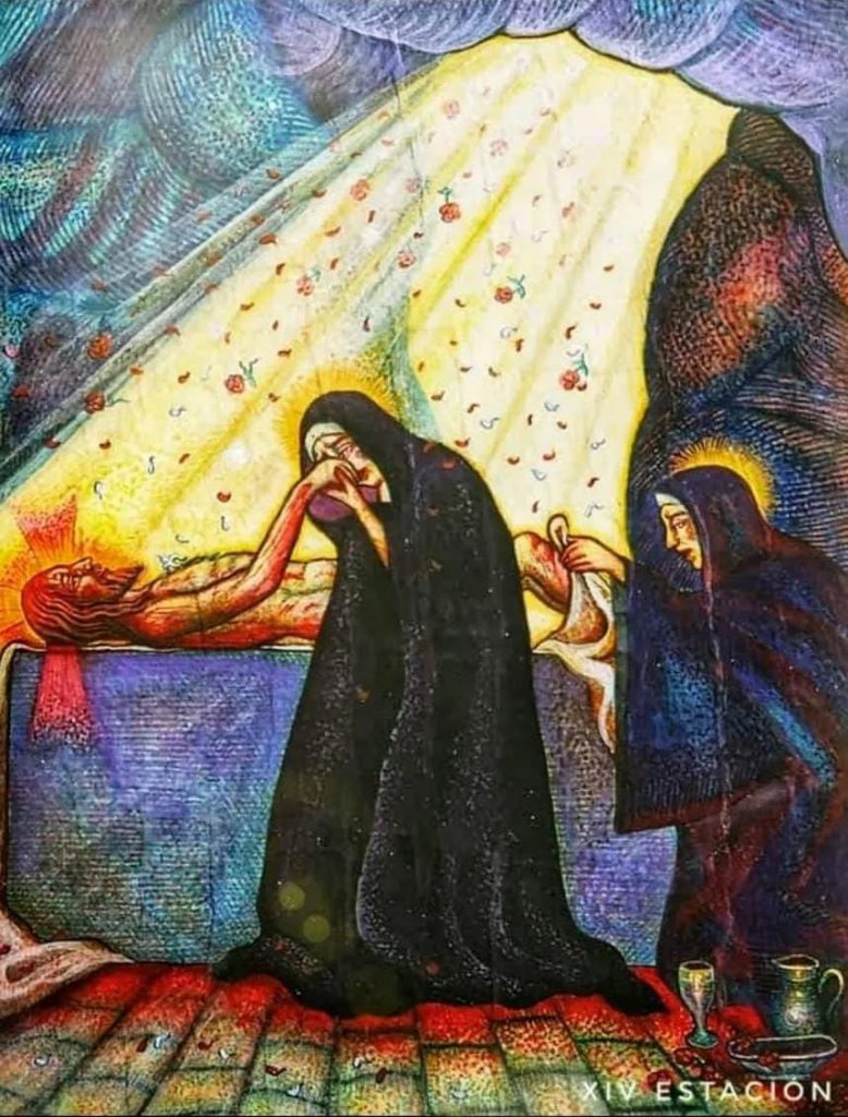 Del mismo autor, son las XIV Estaciones del Vía Crucis que rodean las paredes de la Parroquia.